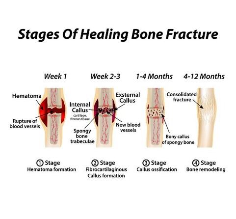 Osteopathic gentle hands on treatment once a week helps your body recover from the tissue restrictions due to the injury, reduce pain and calm your nervous system. This helps increase the blood supply for healing your bone.