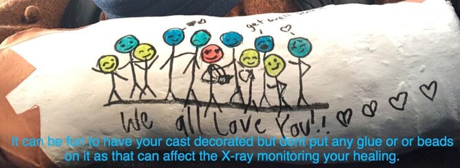 You may have some dark hairs growing on your arm, hand or leg where the cast has been - this can be due to the complete lack of light and also the irritation of the cast. Your arm needs fresh air and light each day and these hairs will go away over a number of weeks. As soon as you are out of the cast, you may be able to drive, check with your orthopaedic specialist. It's ideal to see a hand therapist as soon as possible to get you onto the right stretches and exercises and monitor your recovery. You may be given a splint that you can take on and off. This is a great improvement from the cast as it won't be heavy and you will start to be able to do more with your arm and hand. It’s good to wear it when outside the home to prevent accidental injury to your healing arm bones.