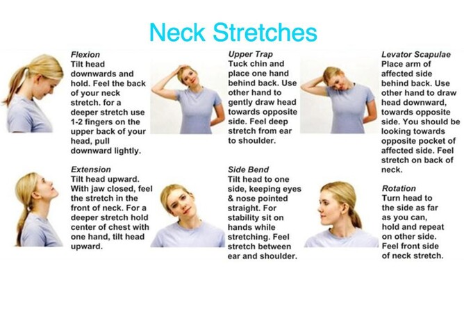 Active movements of your fingers into a gentle fist and open again, 4-5 times a day, roll your shoulders, bend your elbow if you can, and move your neck by turning it one way and then the other as if you are scanning the horizon. Relax one ear towards your shoulder, then the other. Encourage your thumb to move its full range of motion within the limitations of the cast. In a leg cast, wiggle your toes, and move your knee and hip joint a few times every hour if these are available to you. Just because one bone is broken doesn't mean the rest of you need to stop moving. See the neck stretches guide below.