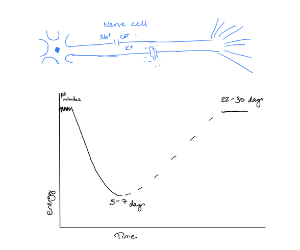 In the next phase, the spreading depression phase (not to be confused with mental depression) the body needs to deal with this energy discrepancy and start slowly repairing it. It takes the body around 22-30 days to restore energy to its normal levels. During this time you can experience symptoms like