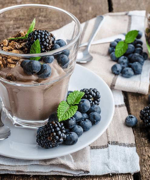 We love to serve the chocolate mousse with coconut yogurt and berries - in the photo above those are New Zealand blackcurrants. Not grown in China like many frozen berries are!